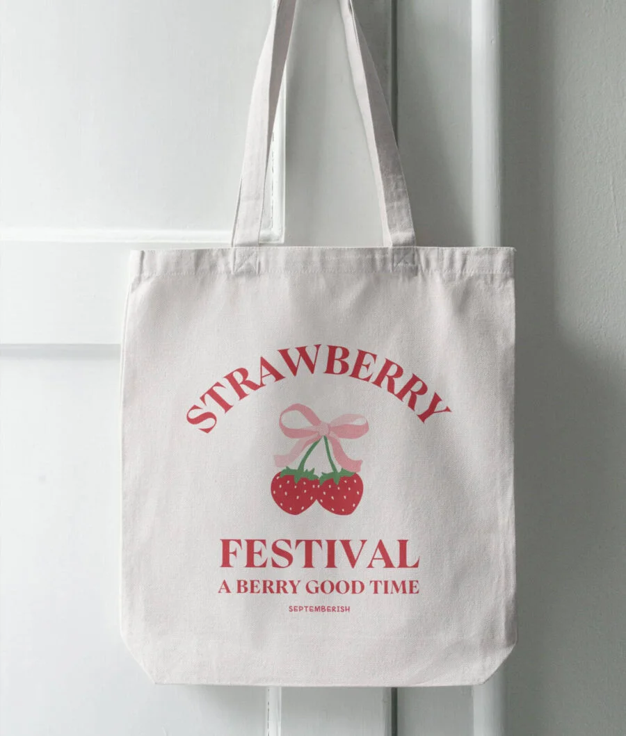 Introducing the Strawberry Festival Tote Bag: A Symphony of Sweet Vibrance and Functional Elegance
